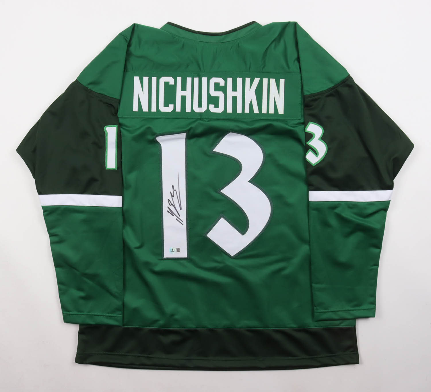 Custom jersey with everything sewn on, size XL. Hand-signed by Valeri Nichushkin.