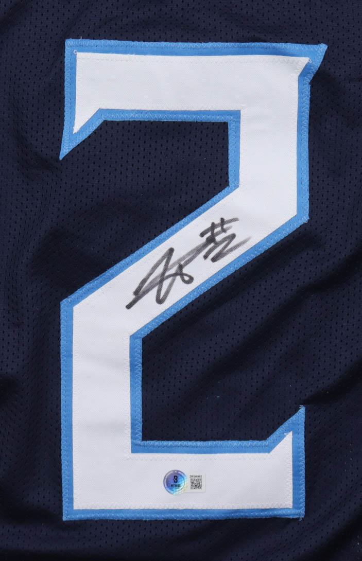Custom jersey with everything sewn on, size XL. Hand-signed by Tyjae Spears.