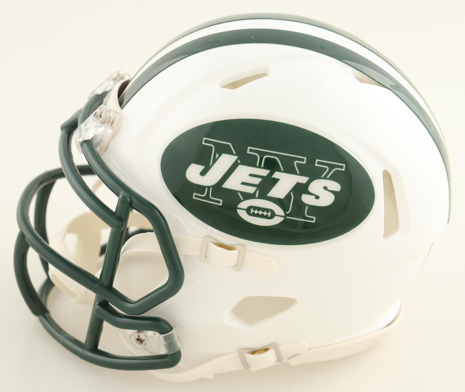 Riddell New York Jets Throwback Speed Mini Helmet has been hand-signed by Darrelle Revis.