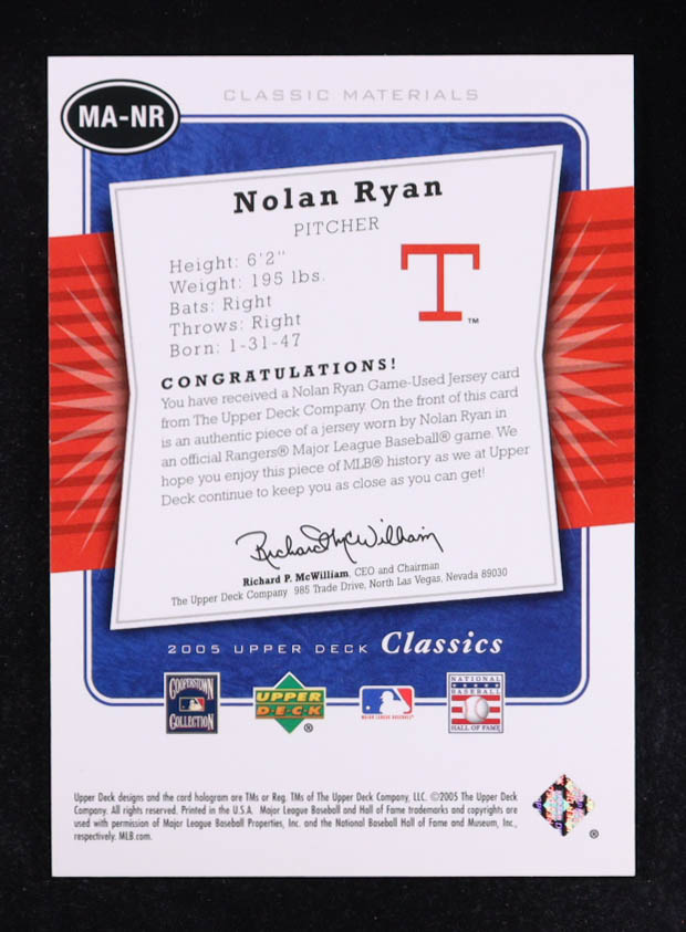 Nolan Ryan 2005 Upper Deck Classic Materials #MA-NR