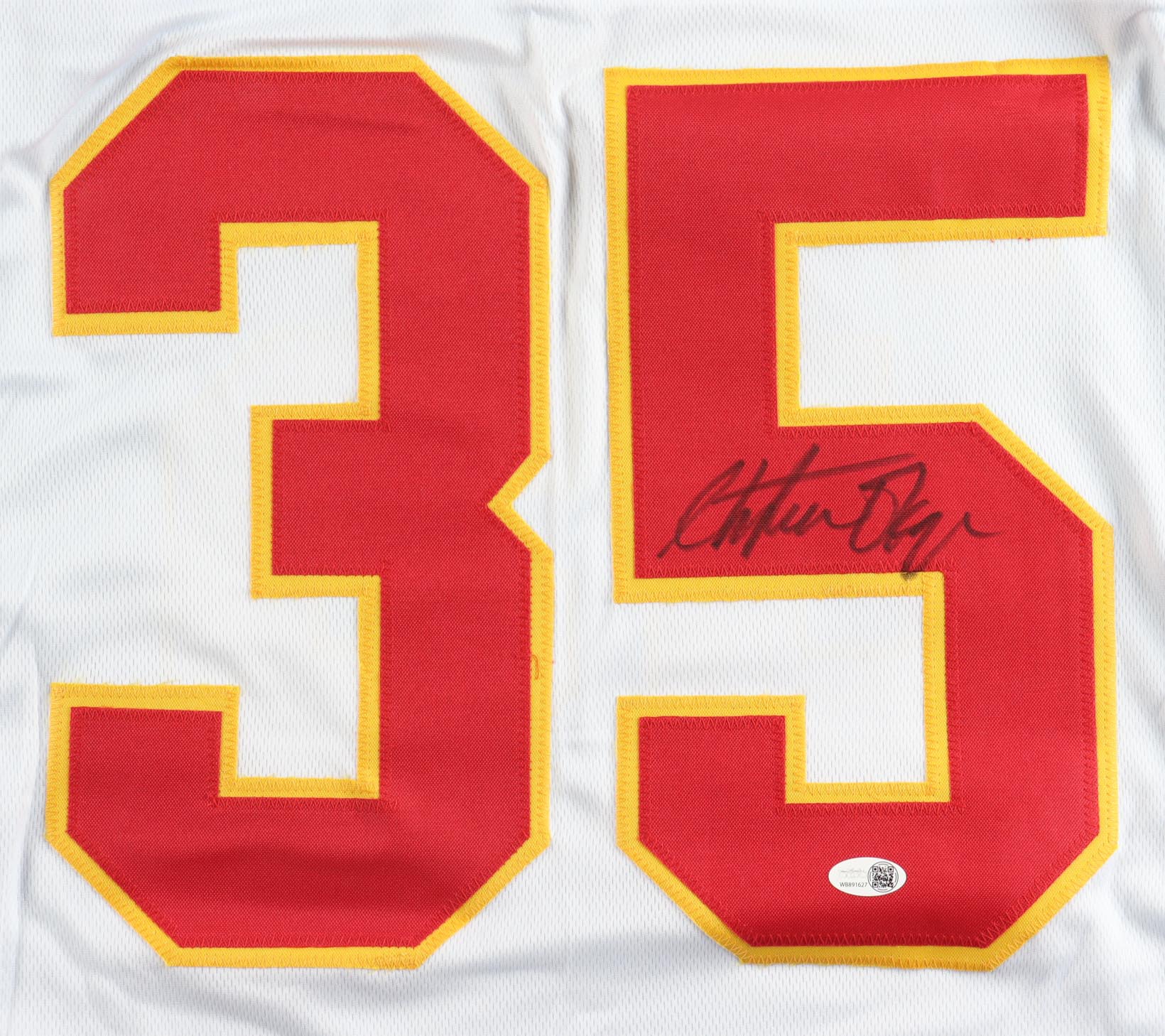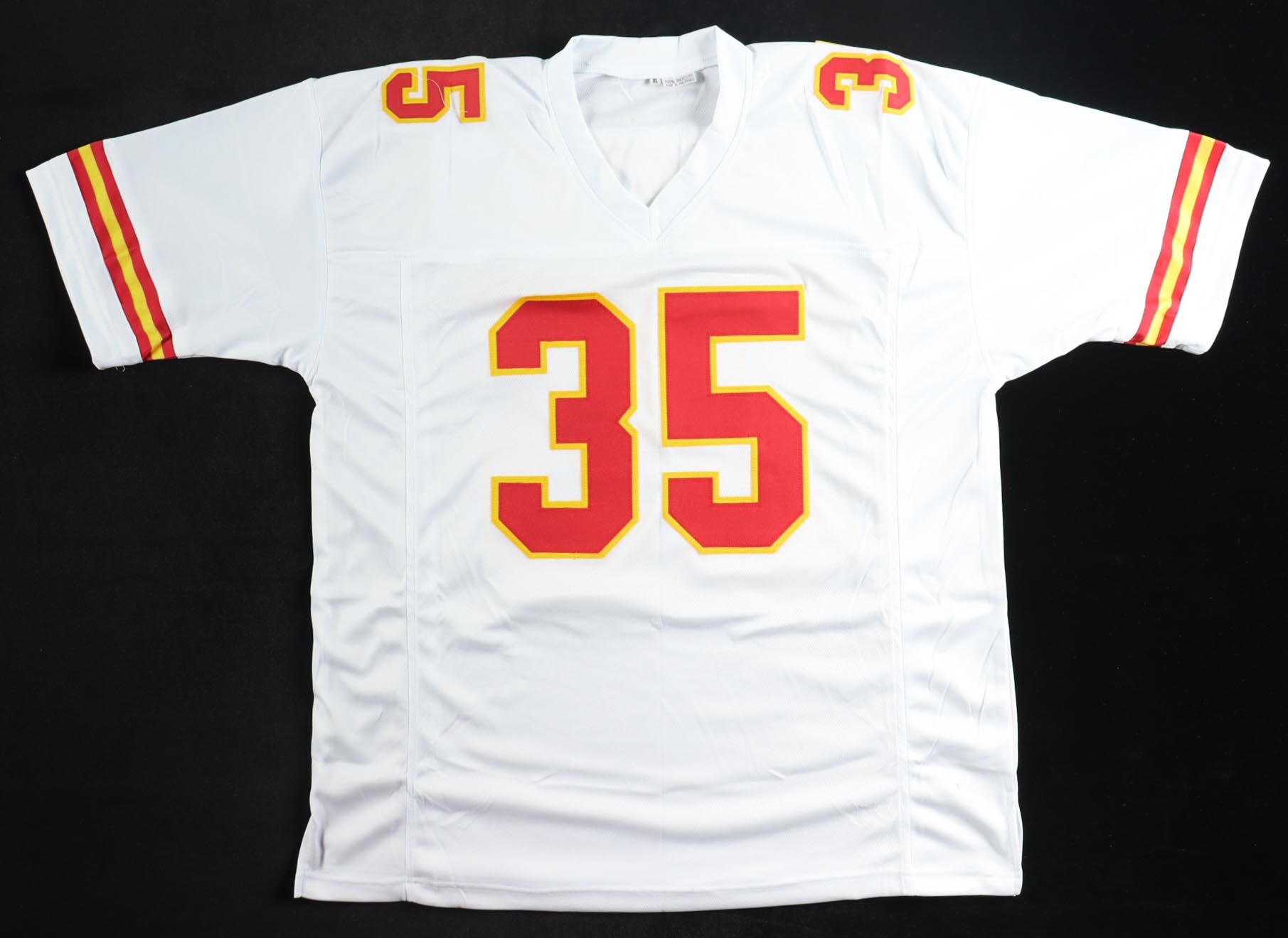 Custom jersey with everything sewn on, size XL. Hand-signed by Christian Okoye (Kansas City Chiefs).