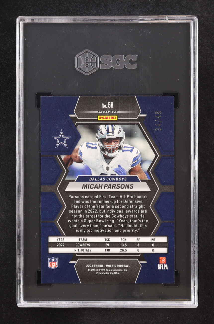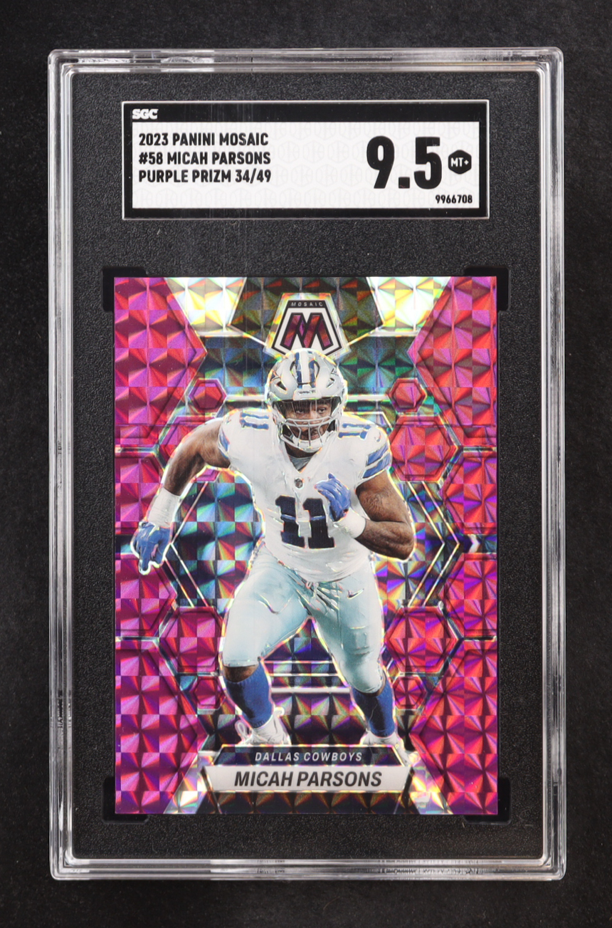 Micah Parsons 2023 Panini Mosaic Purple Prizm #58 #34/49 (SGC 9.5)