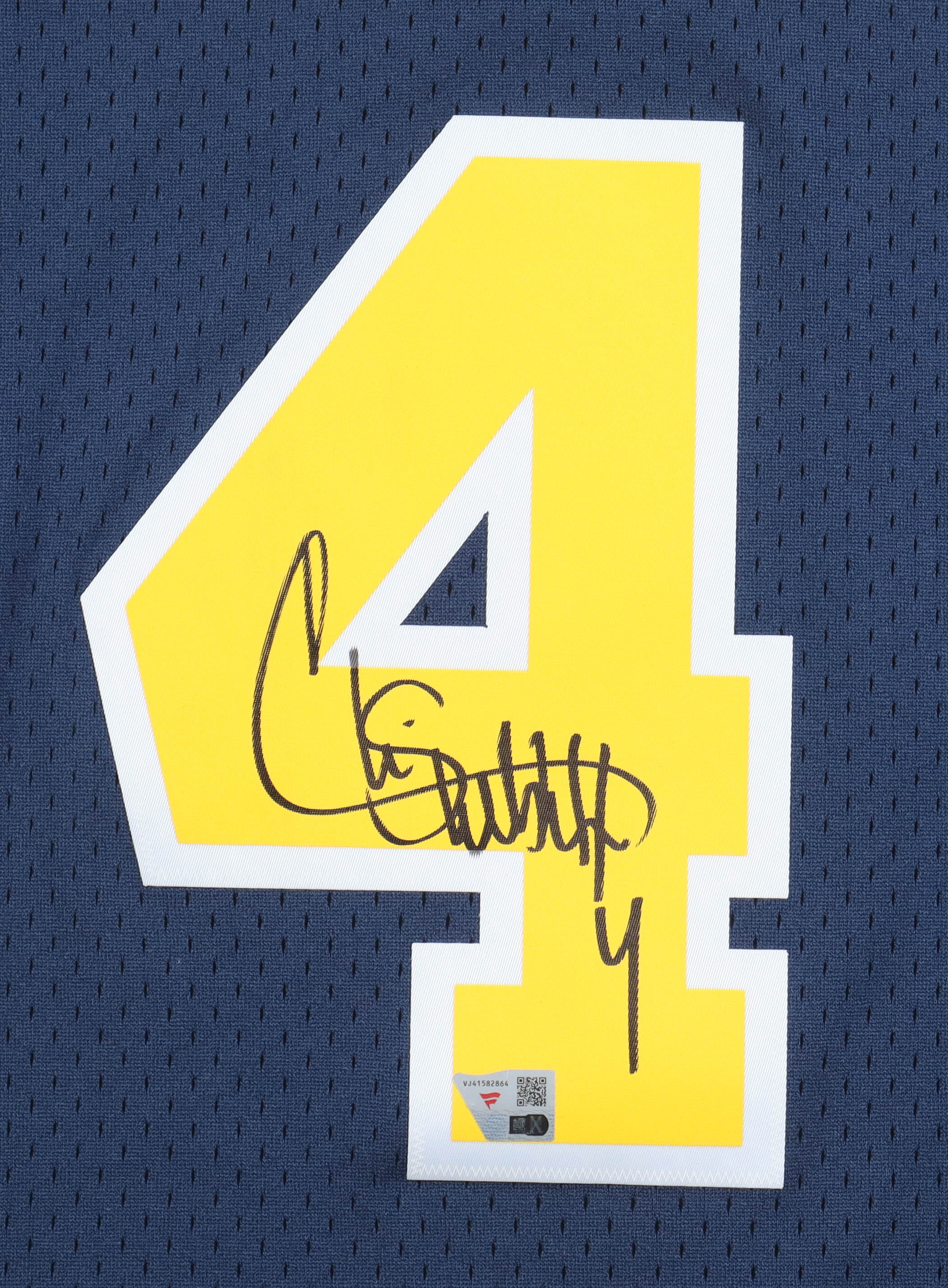 Mitchell & Ness jersey with everything pressed on, size L. Hand-signed by Chris Webber (Michigan Wolverines, HOF)