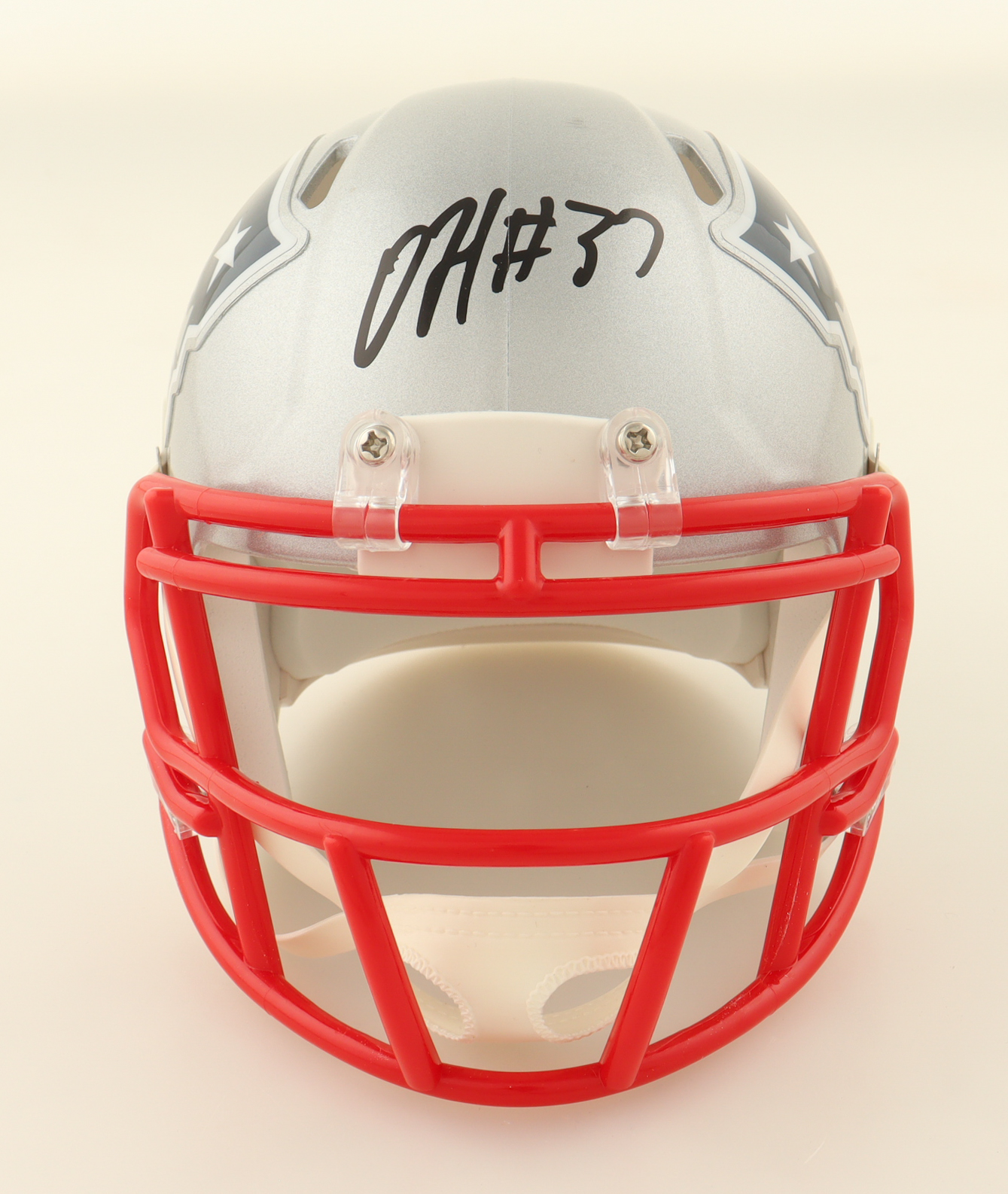 Riddell New England Patriots Speed mini helmet. Hand-signed by Damien Harris.