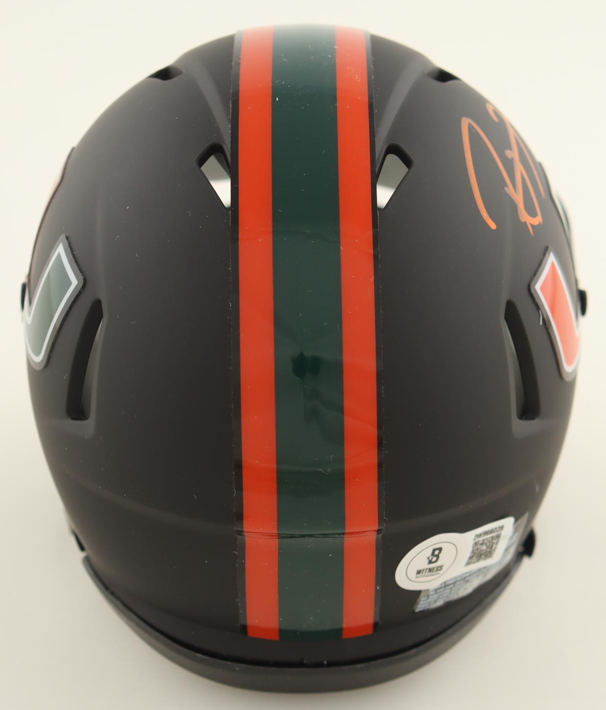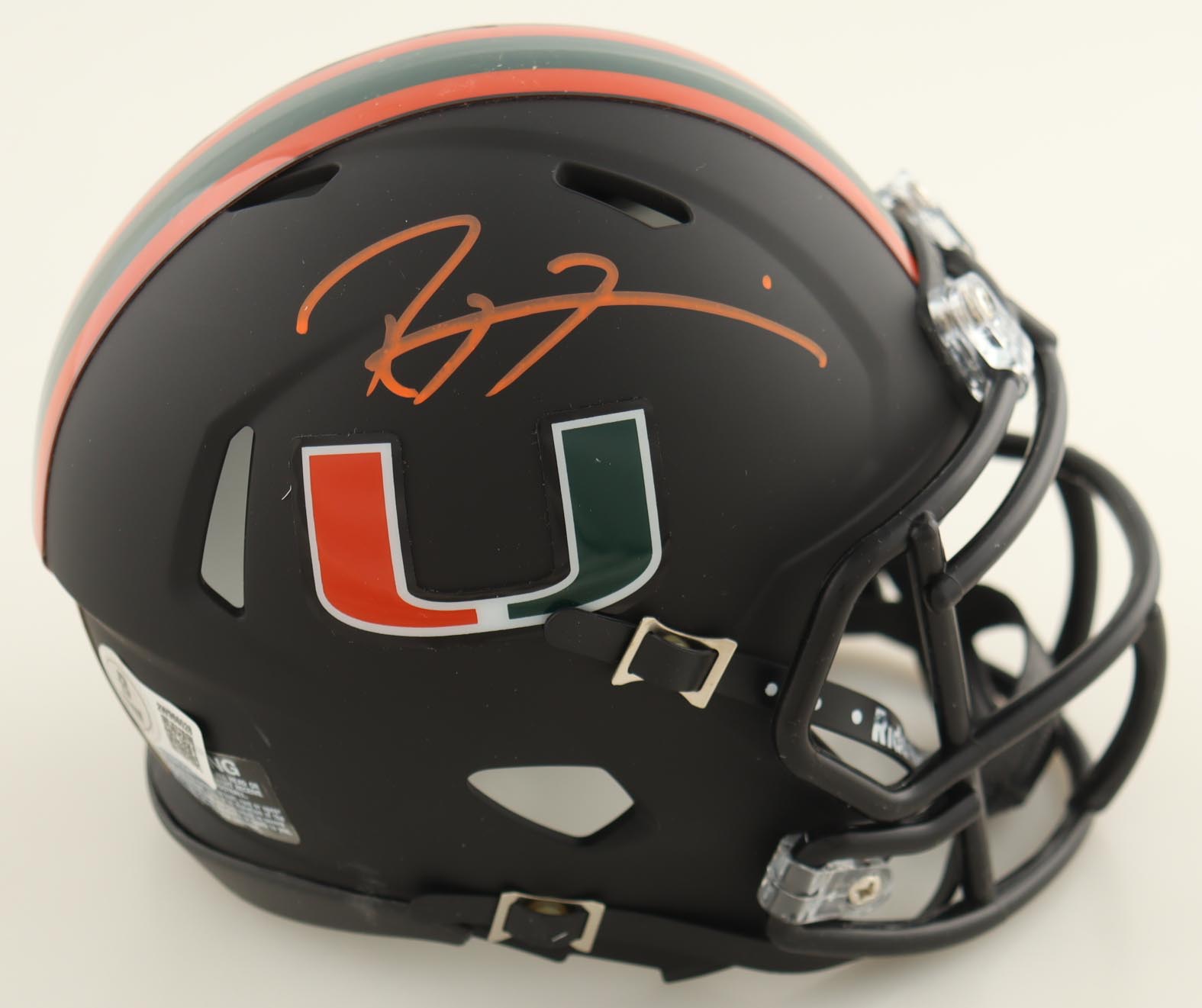 Riddell Miami Hurricanes Matte Black Speed mini helmet. Hand-signed by Ray Lewis (HOF).