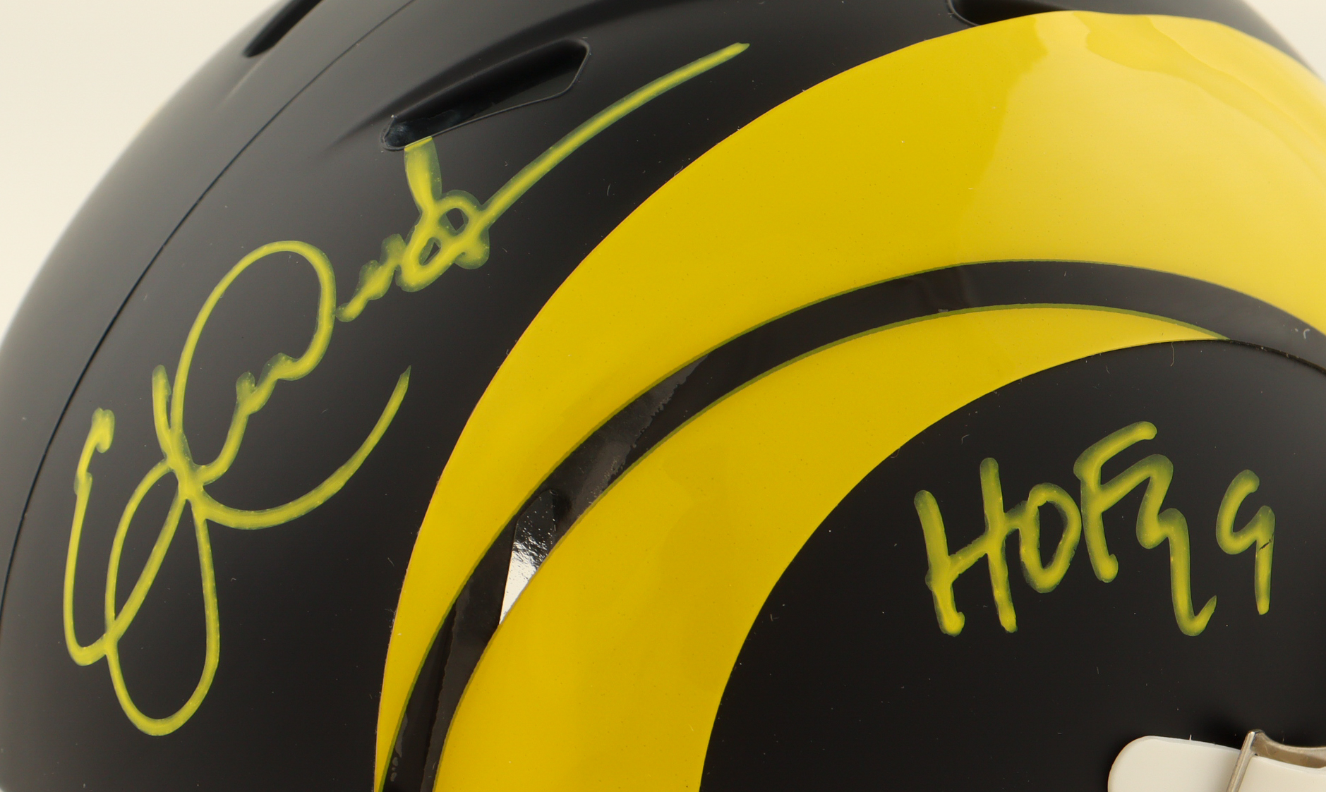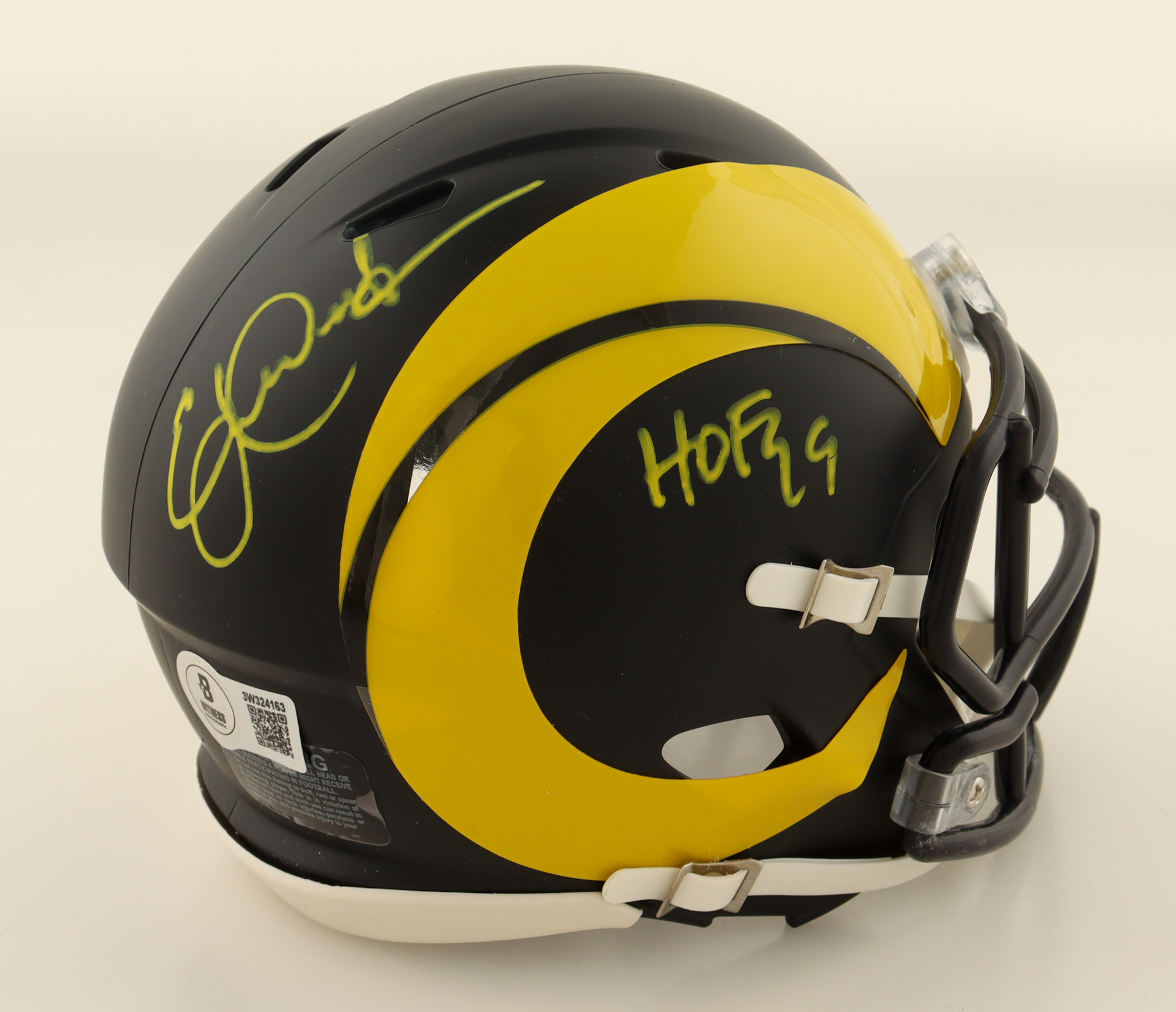 Riddell Los Angeles Rams Rival Alternate Speed mini helmet. Hand-signed and inscribed by Eric Dickerson (HOF).