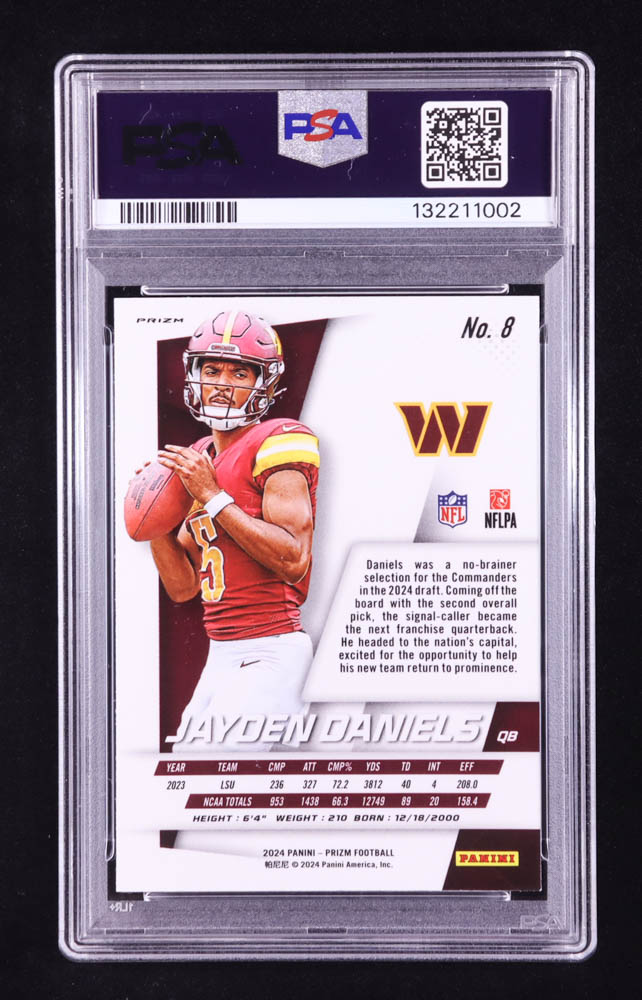 Jayden Daniels Signed 2024 Panini Prizm Flashback Rookie No Huddle #8 RC (PSA)