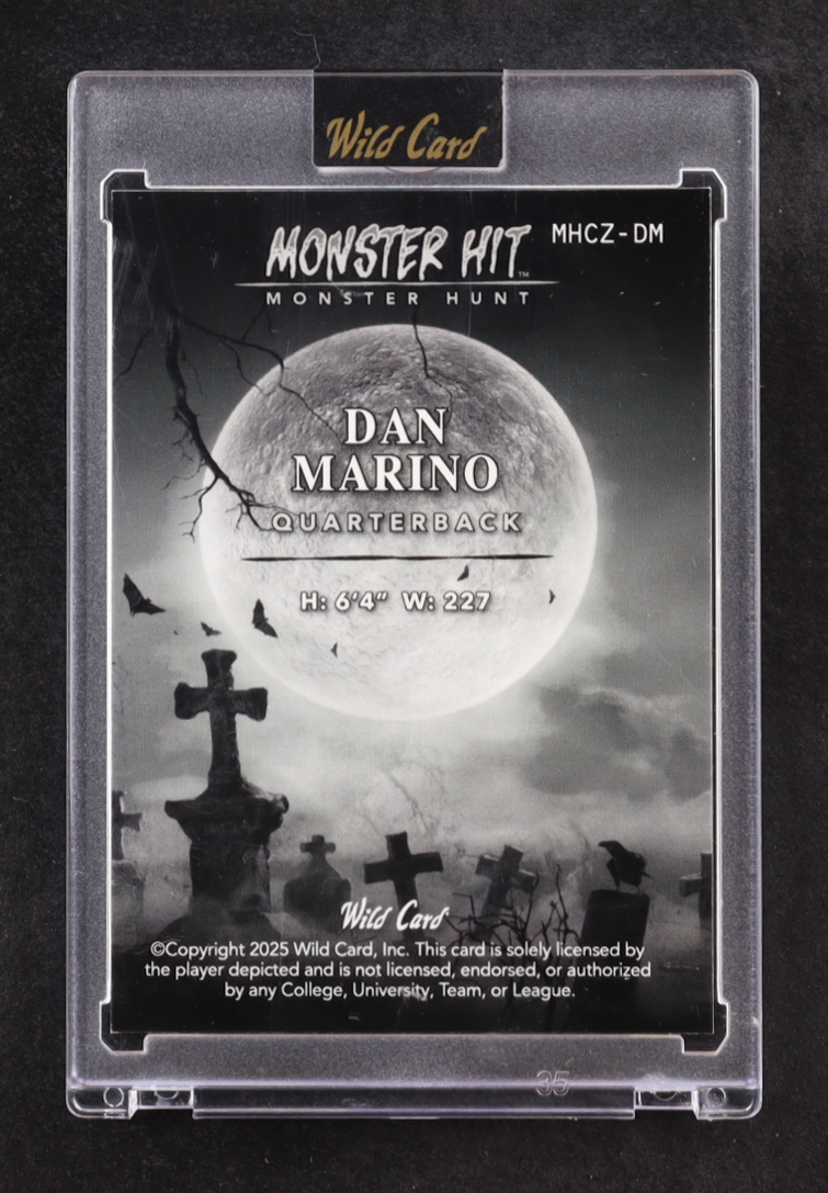 Dan Marino 2025 Wild Card Monster Hit Monster Hunt Zombie Platinum Cross Hatch Foil #MHCZ-DM #1/1