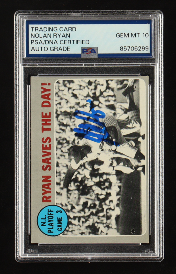 Nolan Ryan Signed 1970 Topps Ryan Saves The Day #197 (PSA | Autograph Graded PSA 10)