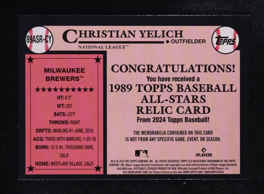 Christian Yelich 2024 Topps All Star 89' Relics #89ASR-CY