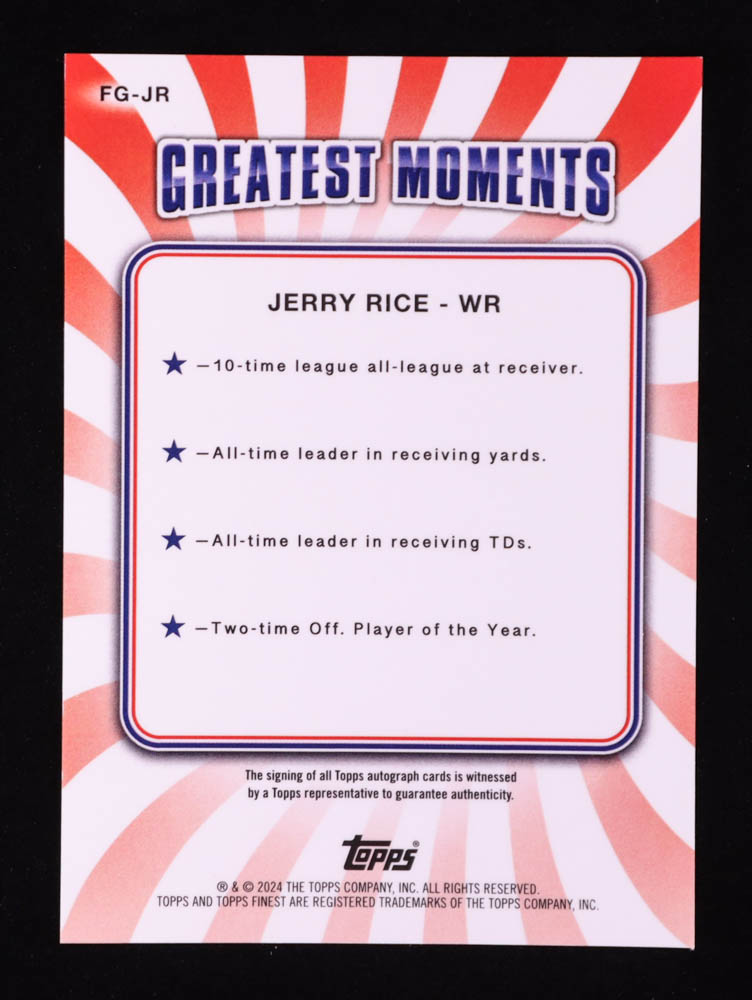 Jerry Rice 2024 Finest Greats Autographs Black Refractors #FGJR #10/25