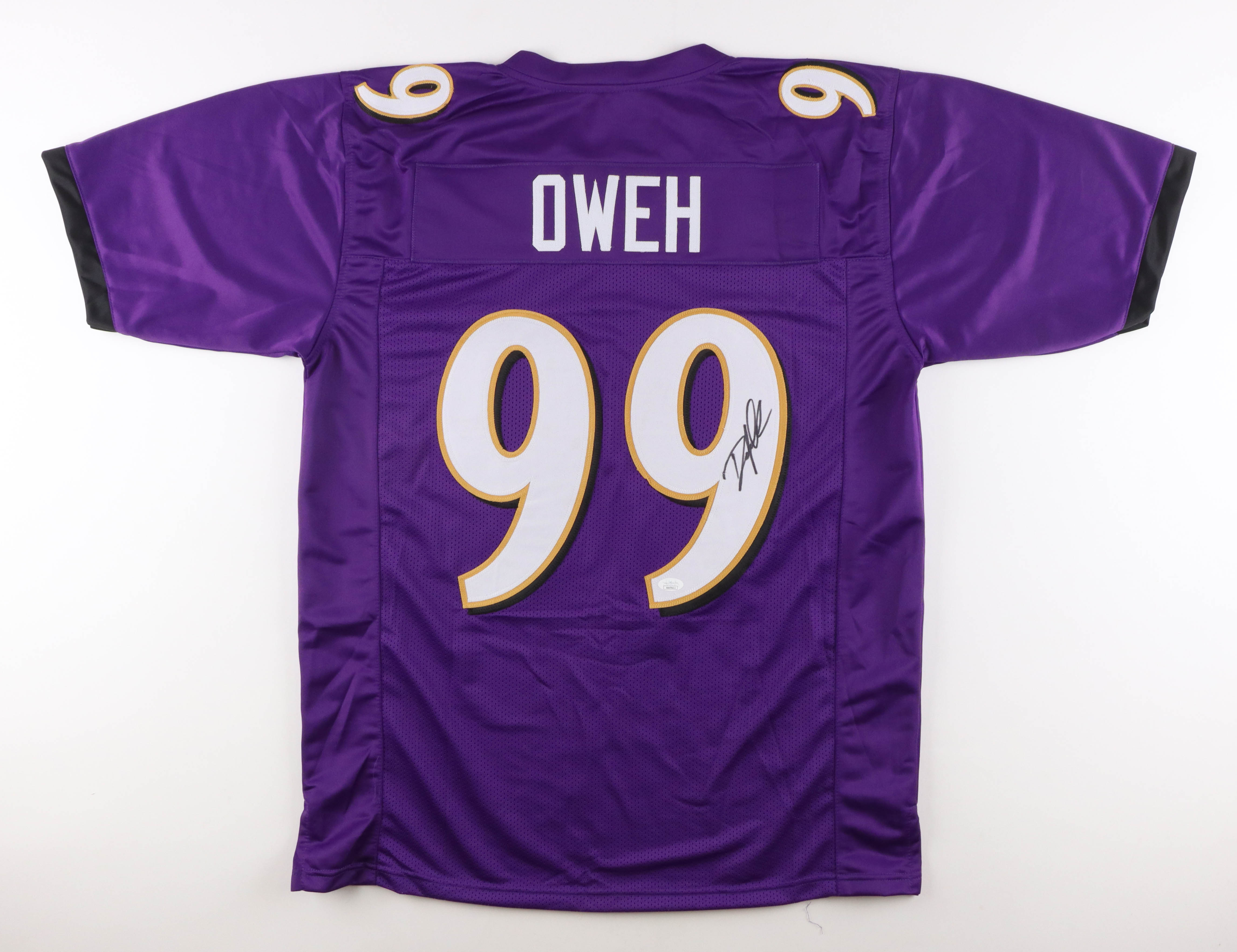 Custom jersey with everything sewn on, size XL. Hand-signed by Odafe Oweh (Baltimore Ravens).