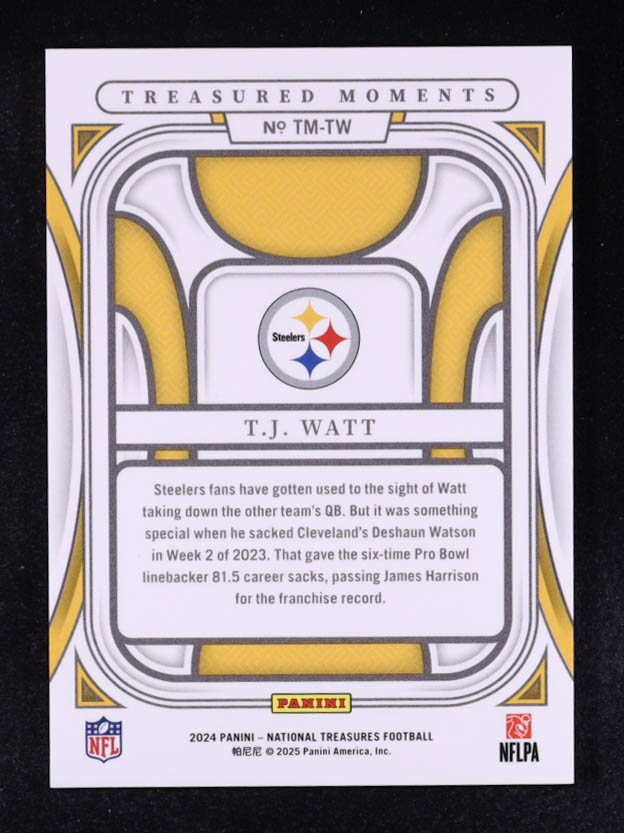 T.J. Watt 2024 Panini National Treasures Treasured Moments Holo Silver #8 #09/25