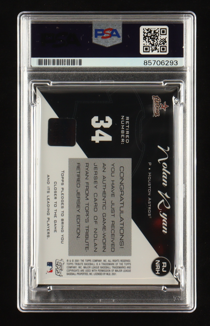 Nolan Ryan Signed 2001 Topps Tribute Retired Game Jersey #RJNRH (PSA | Auto 10)