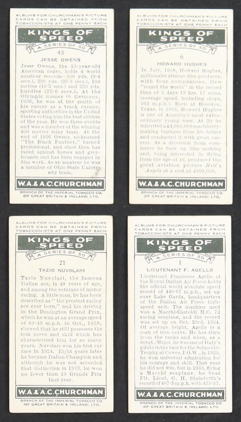 1939 Churchman Kings of Speed Complete Set of (50) Cigarette Cards with Jesse Owens #45 and Howard Hughes #6
