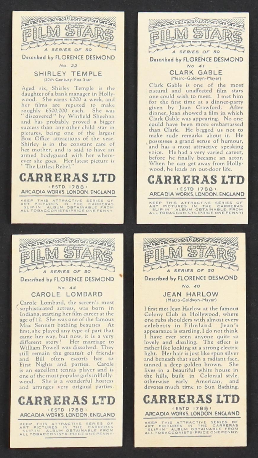 1936 Carreras Film Stars Complete Set of (50) Cigarette Cards with Shirley Temple #22, Jean Harlow #40, Clark Gable #41, James Cagney #39