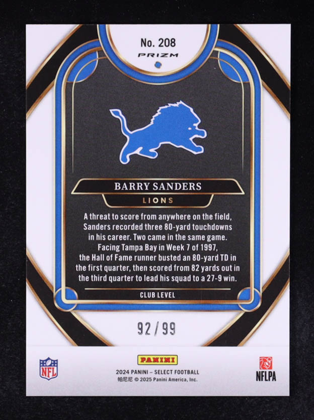 Barry Sanders 2024 Select Prizm Blue #208 #92/99