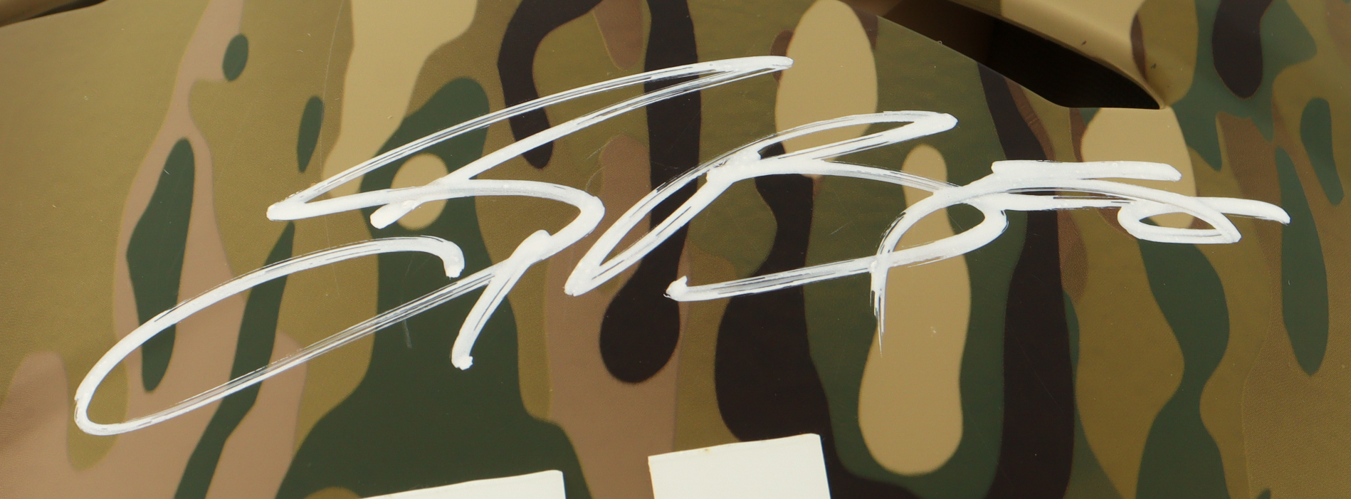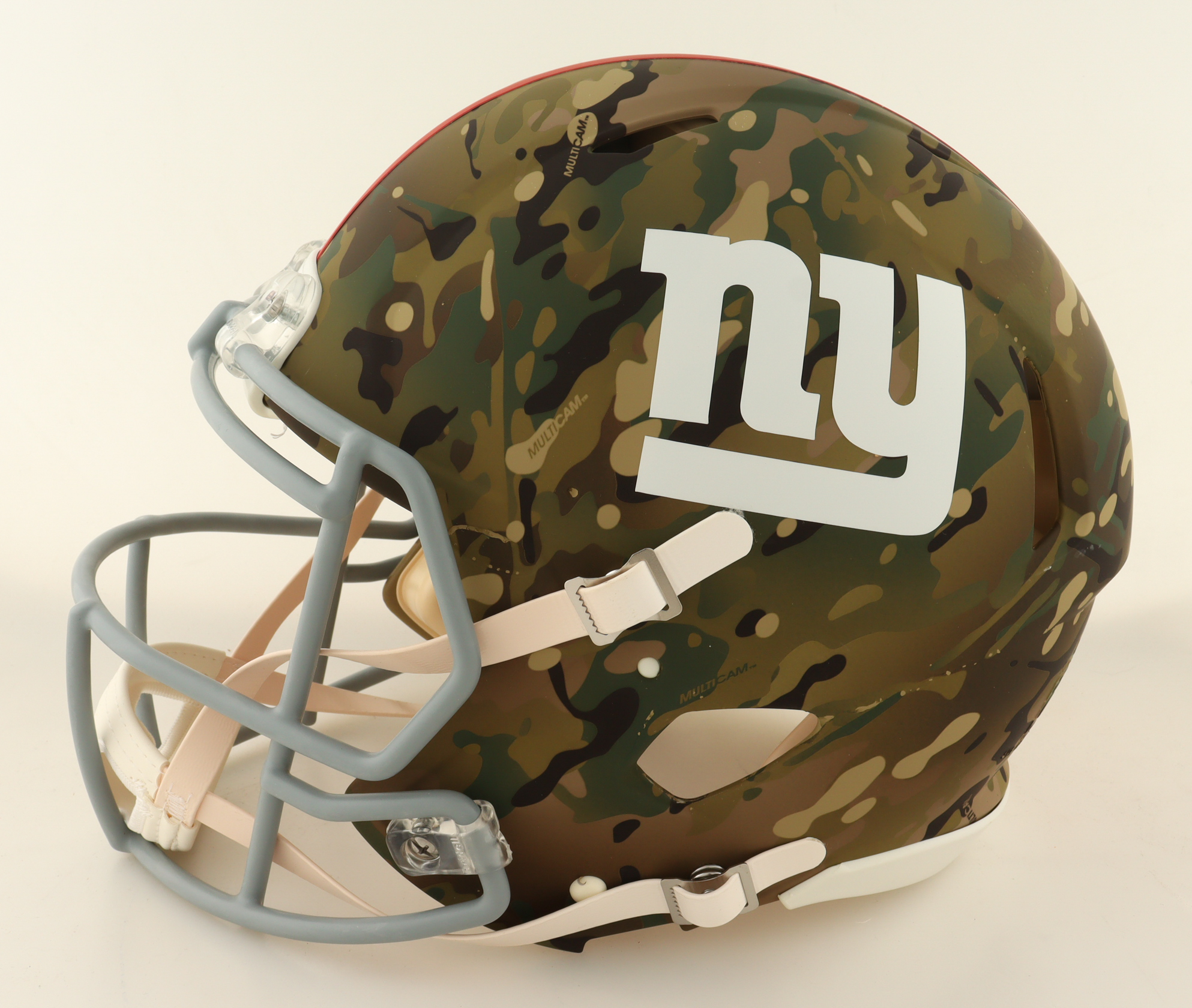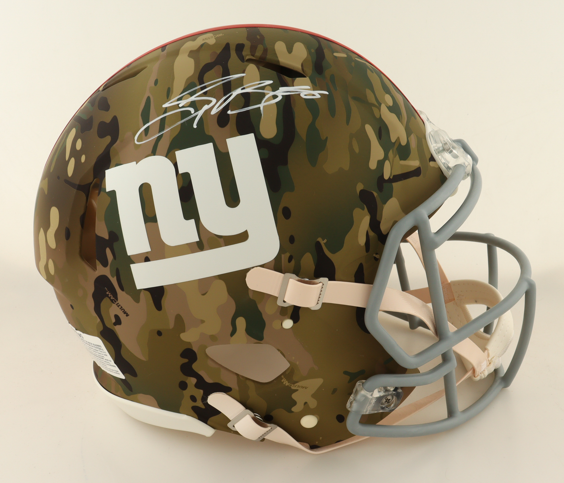 Riddell New York Giants full-size authentic on-field Camo Alternate Speed helmet has been hand-signed by Saquon Barkley.