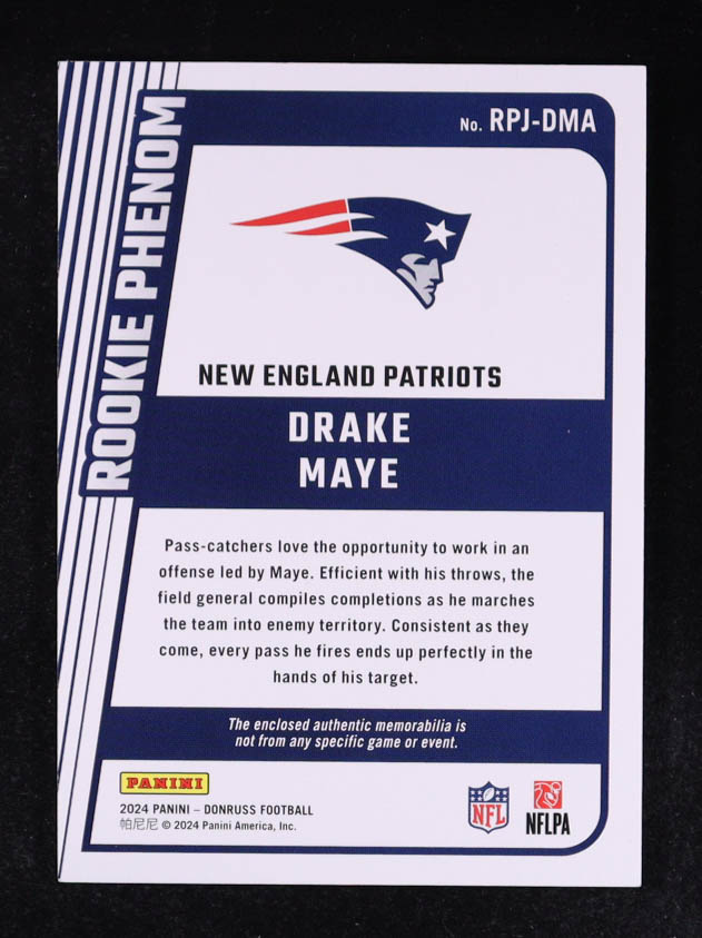Drake Maye 2024 Donruss Rookie Phenom Jerseys #RPJ-DMA RC