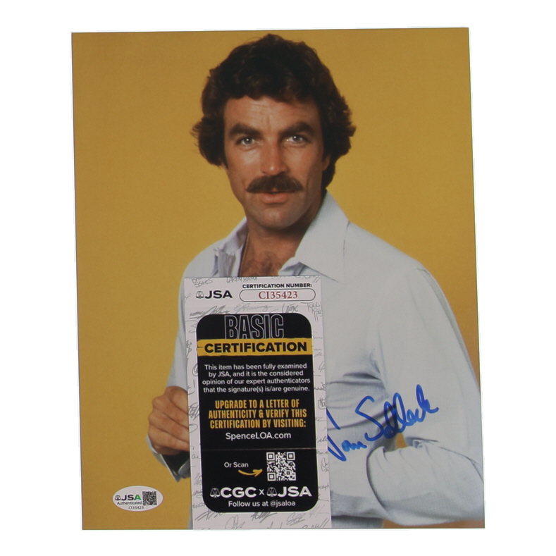 Photo measures approximately 8" x 10". Hand-signed by Tom Selleck.