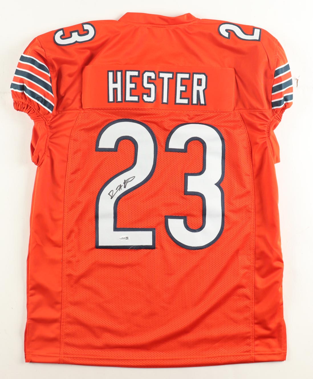 Custom jersey with everything sewn on, size XL. Hand-signed by Devin Hester (HOF).
