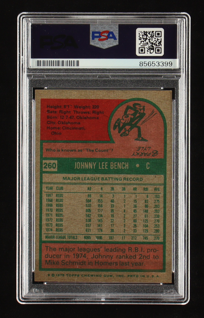 Johnny Bench Signed 1975 Topps Baseball #260 (PSA | Auto 10)
