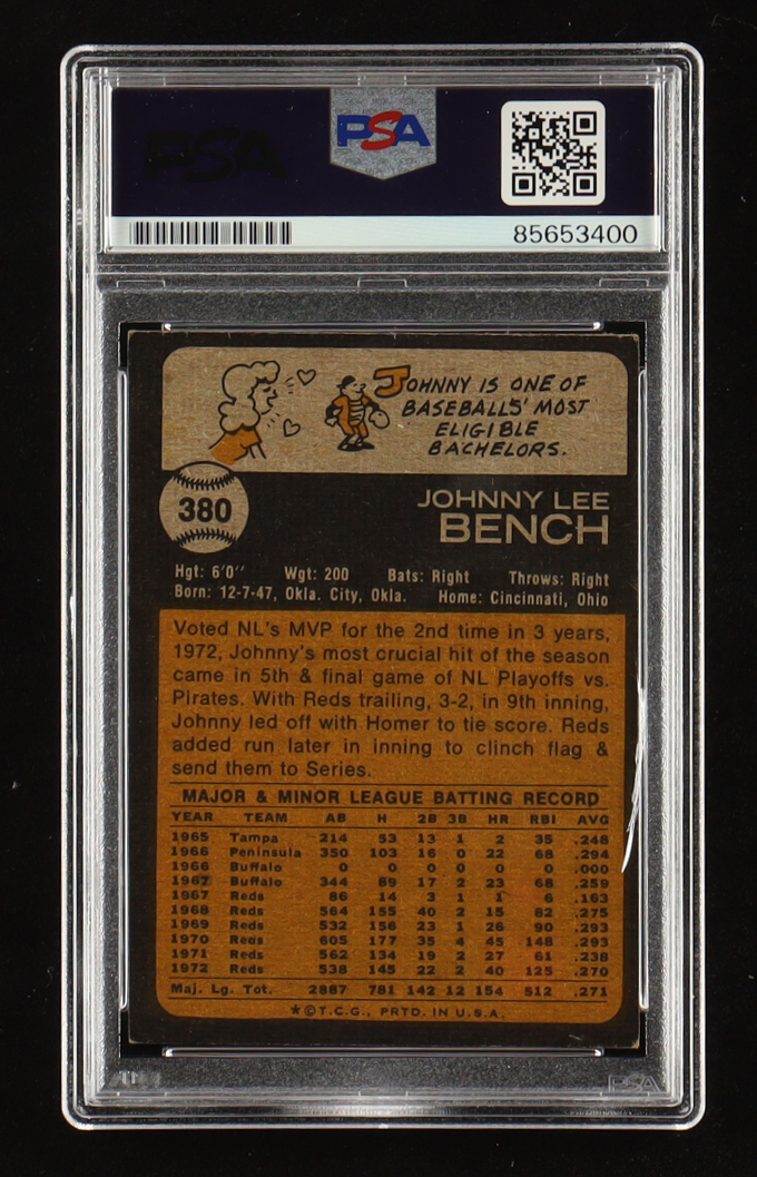 Johnny Bench Signed 1973 Topps #380 (PSA | Autograph Graded PSA 10)