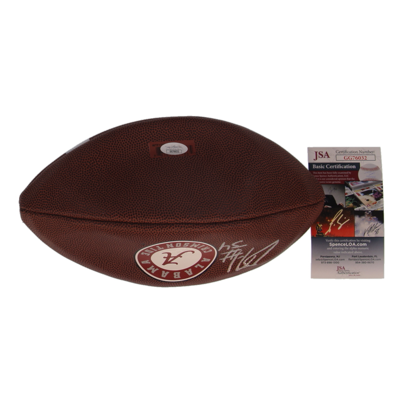 Alabama Crimson Tide logo football. Hand-signed by Damien Harris.