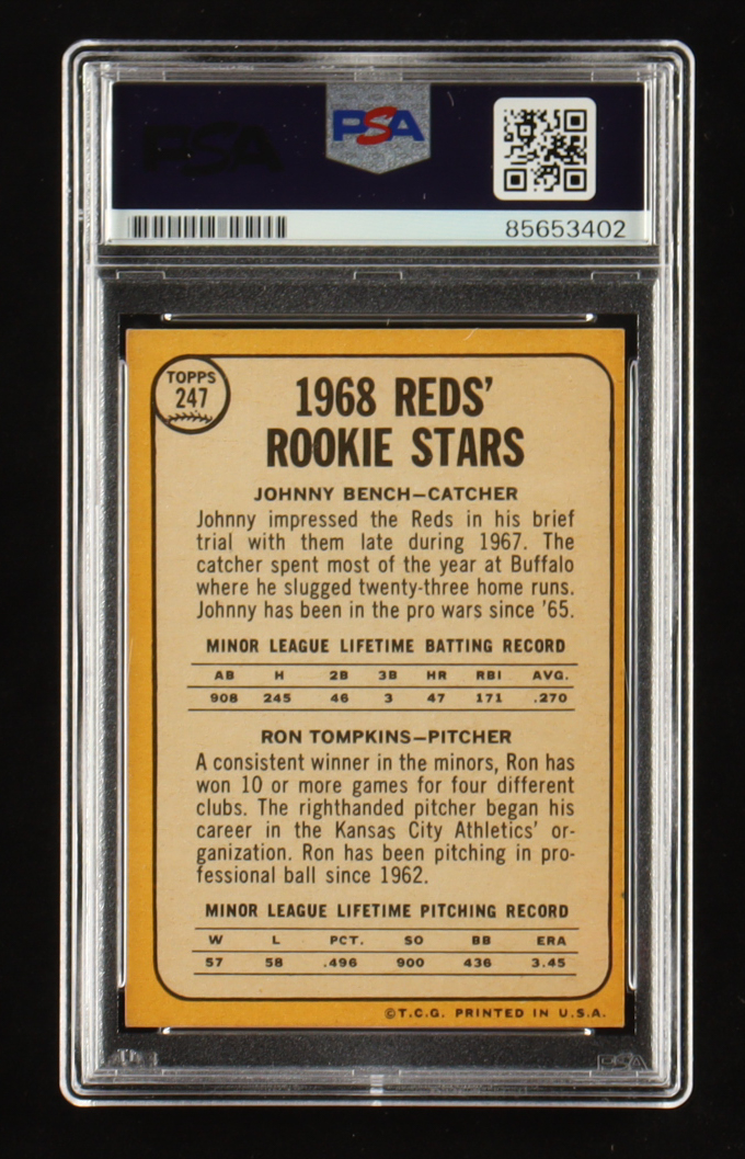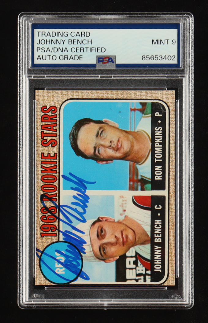 Johnny Bench Signed 1968 Topps Rookie Stars #247 RC (PSA | Autograph Grade 9)