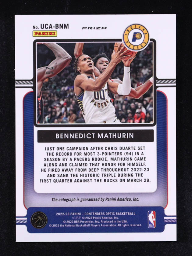 Bennedict Mathurin 2022-23 Panini Contenders Optic Up and Coming #UCA-BNM RC #26/199
