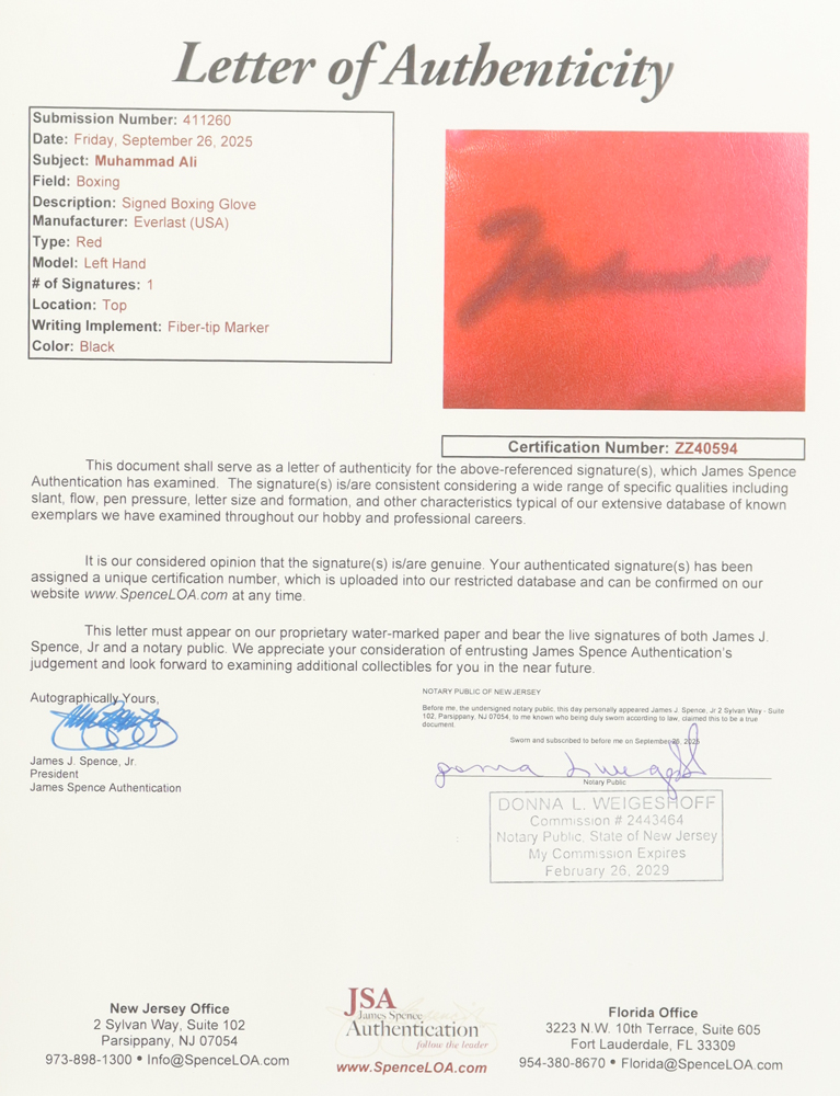 Muhammad Ali Signed Everlast Boxing Glove With (JSA)