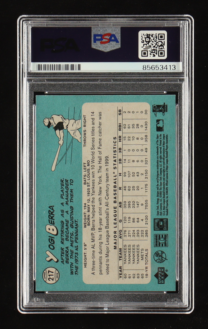 Yogi Berra Signed 2003 Upper Deck Vintage #217 (PSA | Autograph Graded PSA 10)
