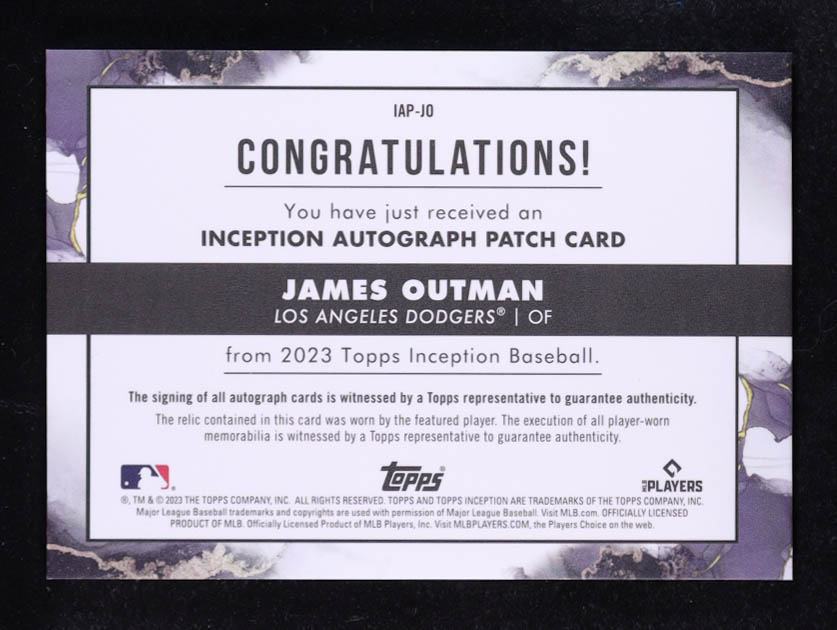 James Outman 2023 Topps Inception Auto Patch #IAP-JO RC #34/99