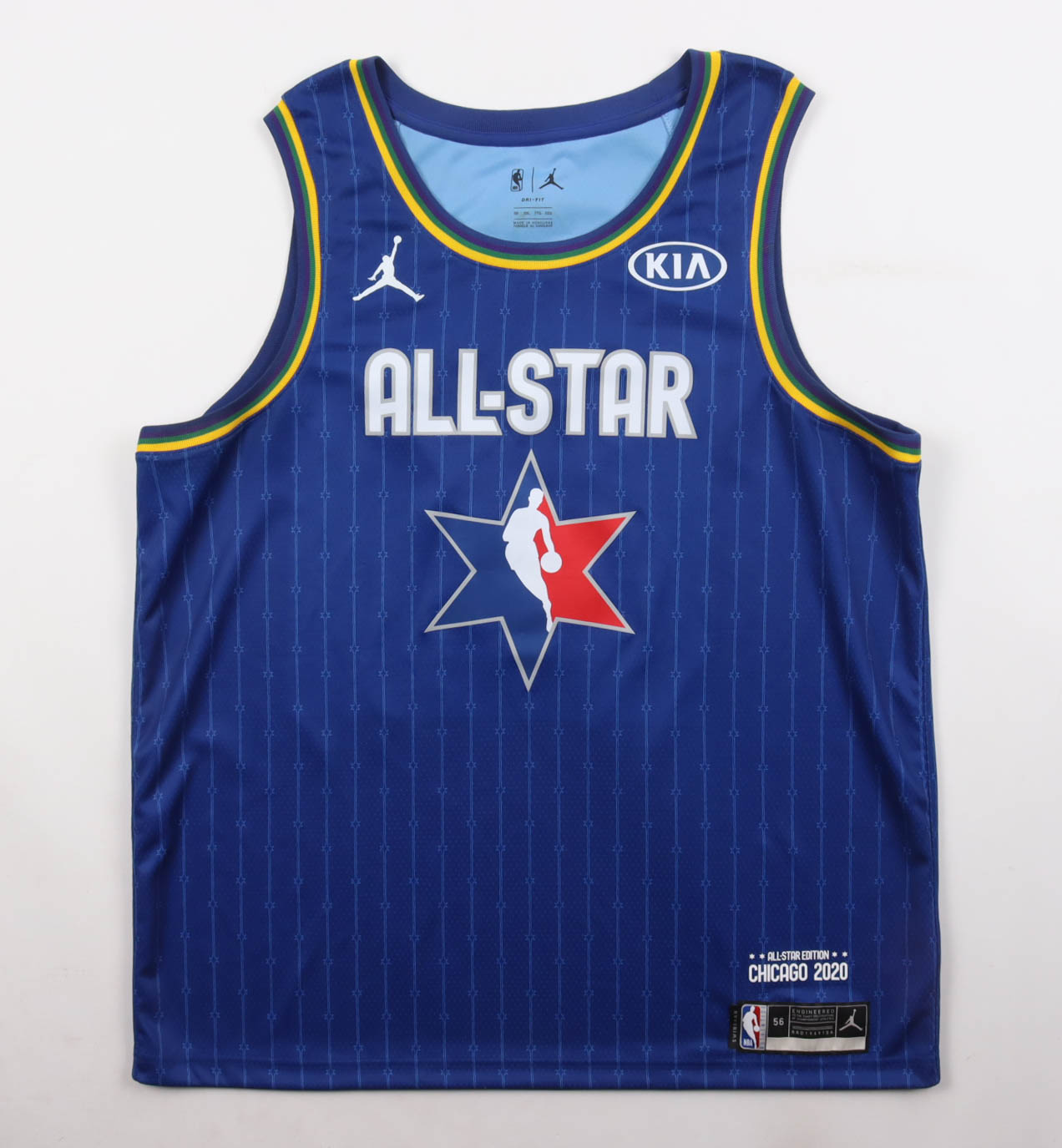 Jordan jersey with everything pressed on, size 56. Hand-signed by Luka Doncic (2020 All-Star Game / Dallas Mavericks). Please note, the signature has bled.