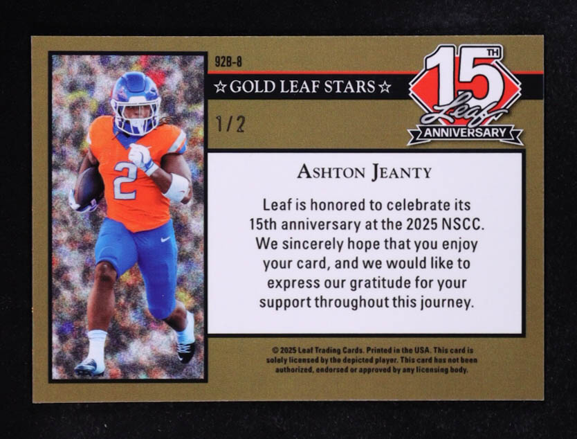 Ashton Jeanty 2025 Leaf 15th Anniversary Gold Leaf Stars #92B-8 RC #1/2