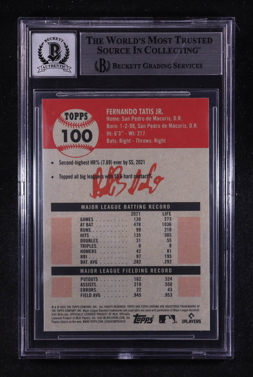 Fernando Tatis Jr. Signed 2022 Topps Chrome Platinum Anniversary #100 (BGS | Auto 10)