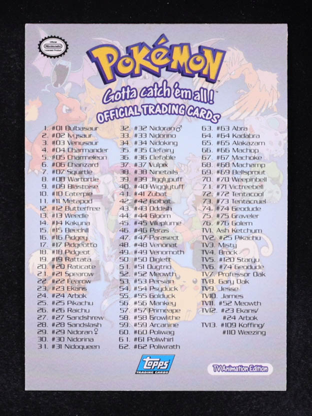 Pokemon TV 1998 Animation Edition Series 1 Foil Checklist