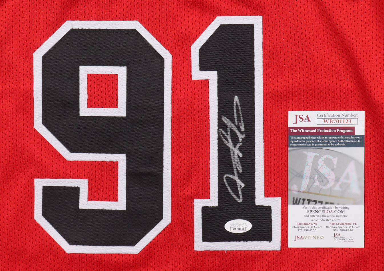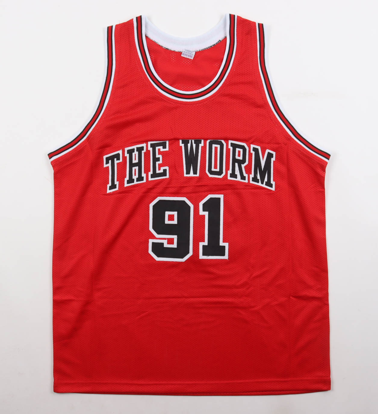 Custom jersey with everything sewn on, size XL. Hand-signed by Dennis Rodman (HOF).