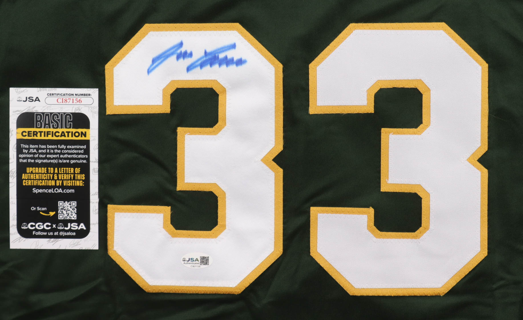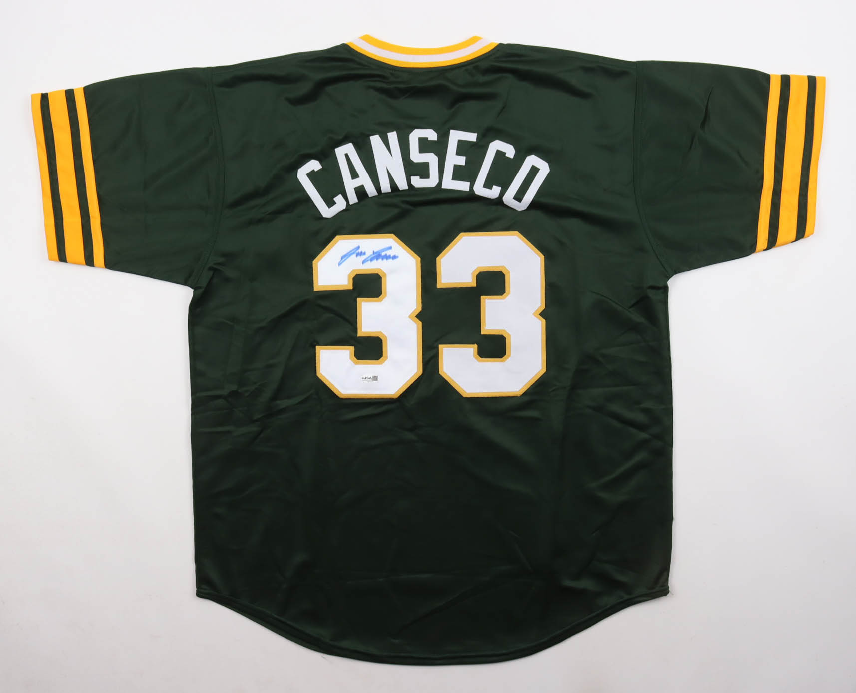 Custom jersey with everything sewn on, size XL. Hand-signed by Jose Canseco.
