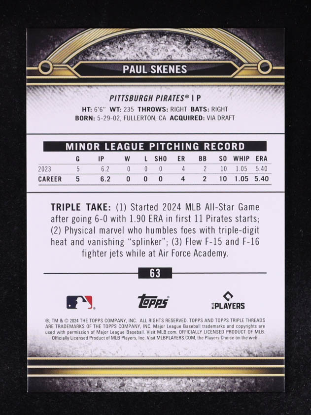 Paul Skenes 2024 Topps Triple Threads Tourmaline #63 RC #060/129