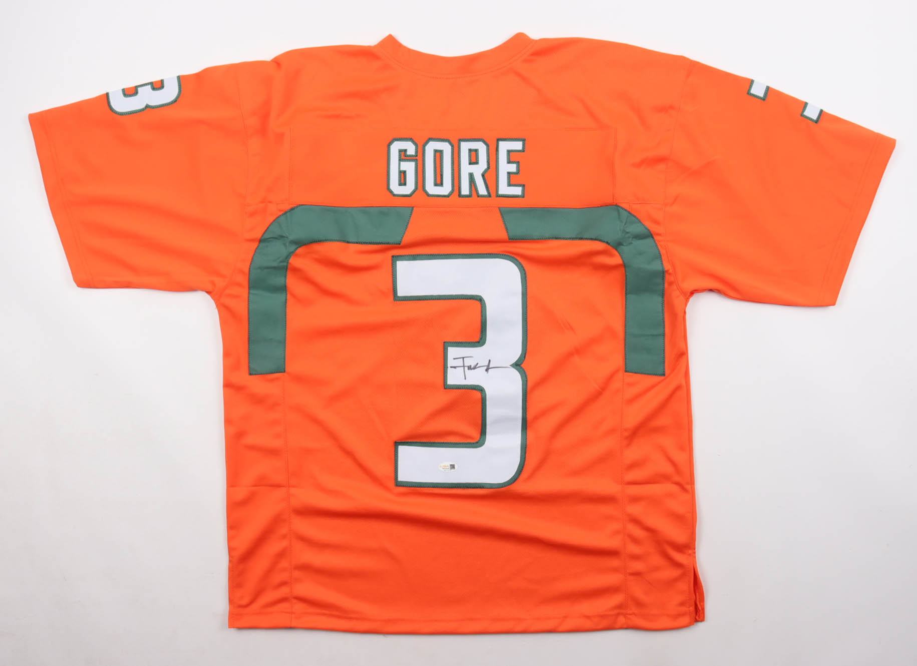 Custom jersey with everything sewn on, size XL. Hand-signed by Frank Gore.