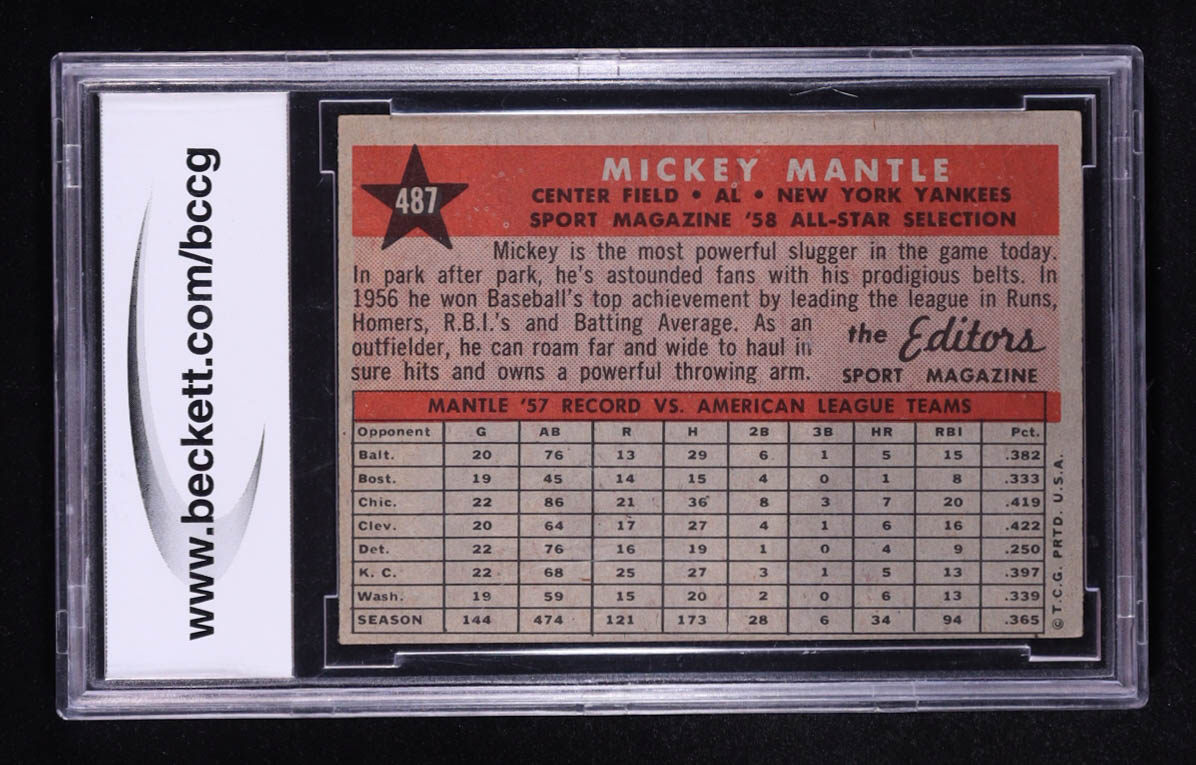 Mickey Mantle 1958 Topps AS TP #487 (BCCG 8)