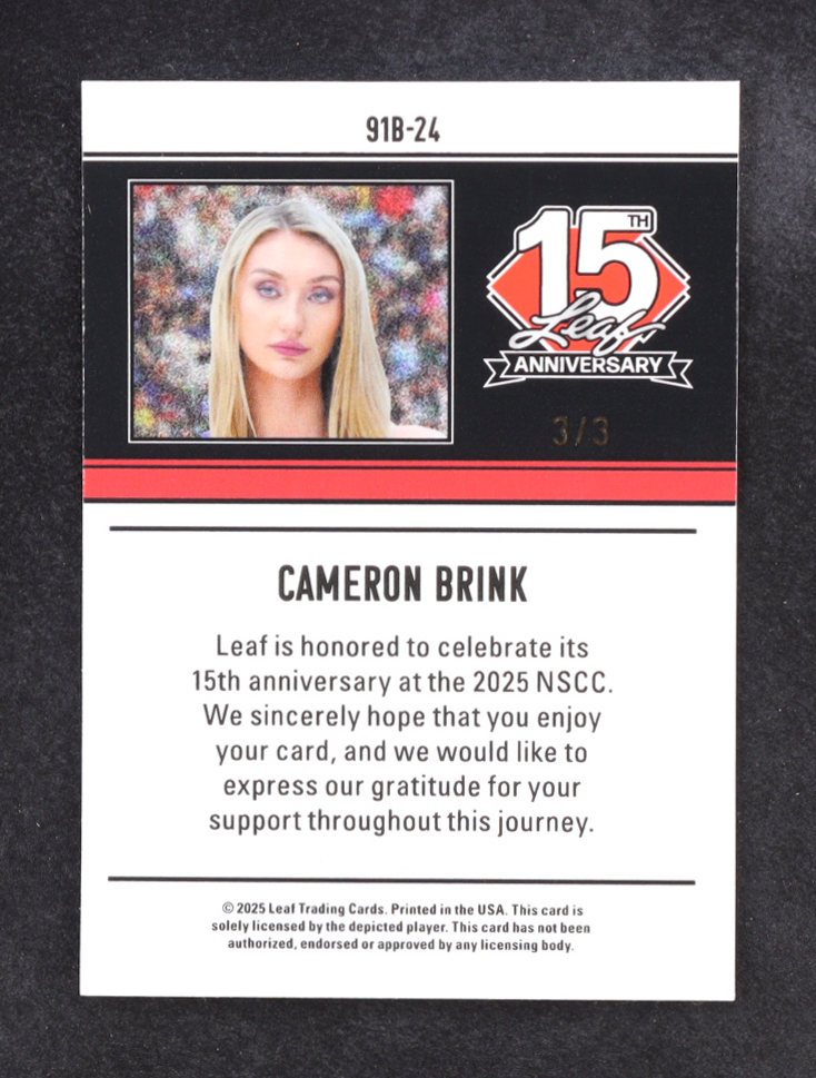 Cameron Brink 2025 Leaf 15th NSCC National Anniversary Red Sparkles #91B-24 #3/3