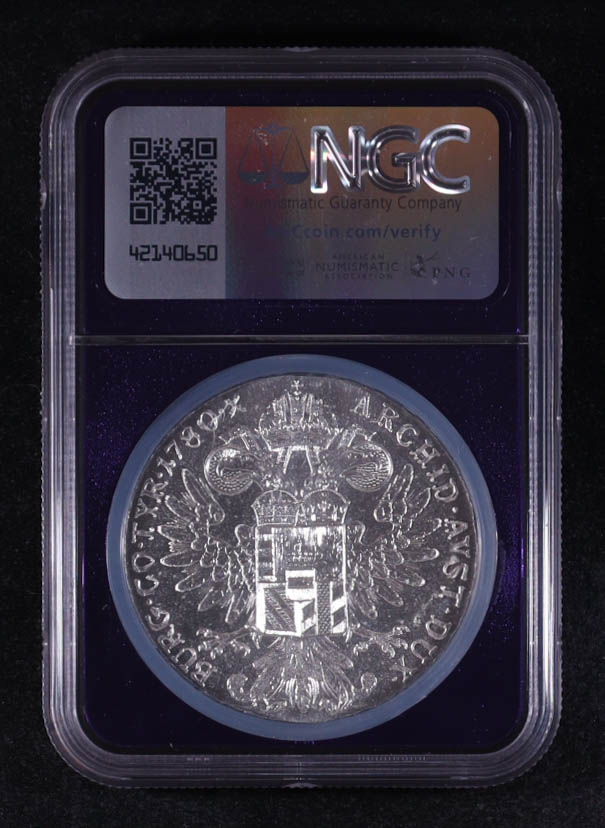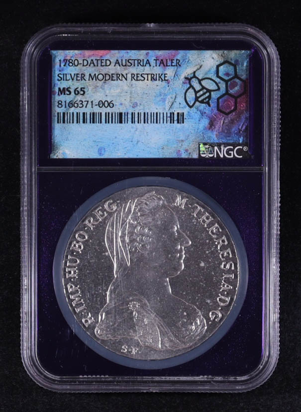 1780-Dated Austria Silver Taler, Modern Restrike (NGC MS65)