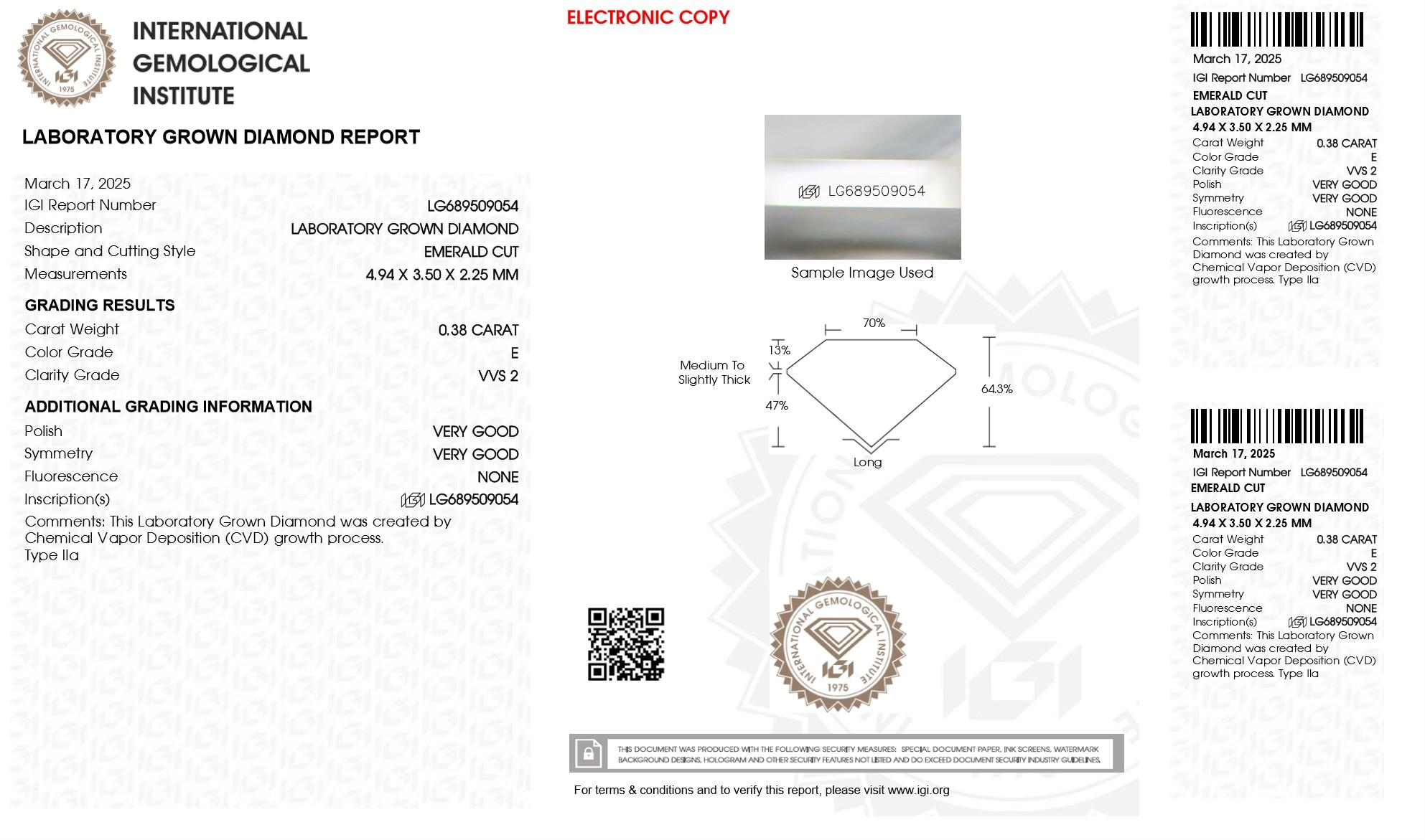This piece includes paperwork from the International Gemological Institute (IGI).