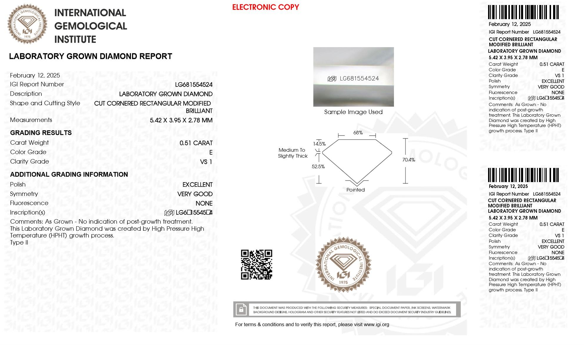 .51 Carats Lab Grown Diamond Loose E, VS1 (IGI Cert)