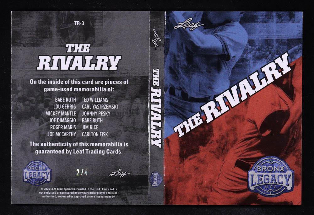 2025 Leaf The Rivalry A Bronx Legacy Game-Used Memorabilia Booklet Silver Sparkle with Babe Ruth / Ted Williams / Lou Gehrig / Carl Yastrzemski #TR3 #2/4