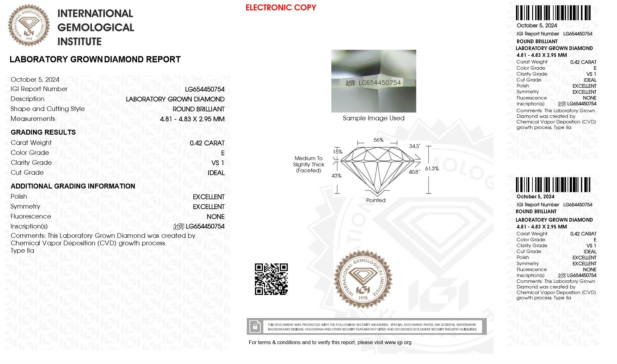 The diamond features a precision laser inscription of the IGI certificate number, ensuring authenticity and traceability.