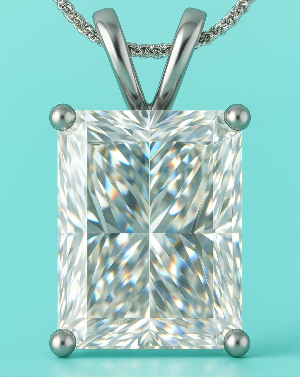One New Radiant Cut Diamond Pendant. Mounting is Made of Sterling Silver.