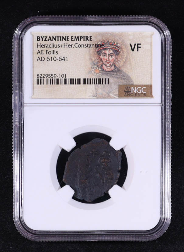 Byzantine Empire - Heraclius & Heraclius Constantine, AD 610-641, AE Follis (NGC VF)